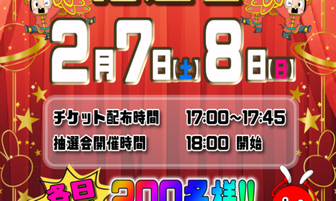 イベント2/7(土)、2/8(日)は、恒例イベント ✨️アナウンス抽選会✨️を開催します‼️ 今回も豪華景品をご用意致しております‼️ 開催時間などの詳細につきましては、告知画像を御覧くださいませ。 ご来店お待ちしております! …