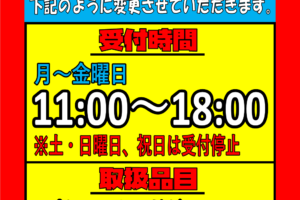 ★12月17日買取受付時間変更のお知らせ★