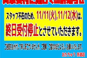 ★12/2(火),12/3(水)の買取受付停止のお... ★12/2(火),12/3(水)の買取受付停止のお知らせ★