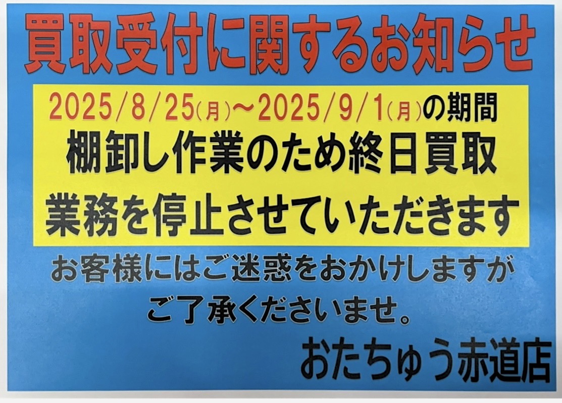 ★8月25日から9月1日の買取業務に関するお知らせ★