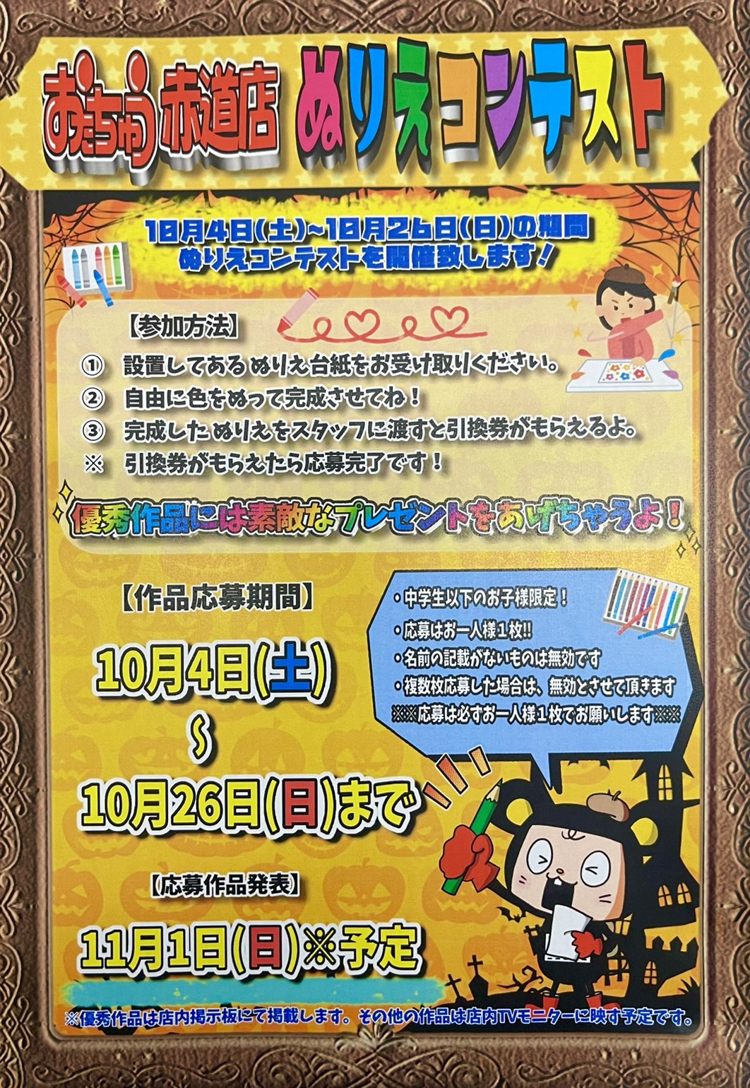 9月のぬりえの当選者は店内掲示板とTVモニターにて上映してます📺