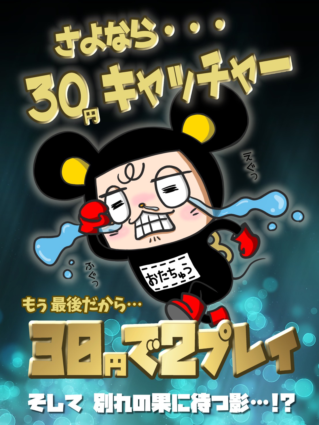■30円キャッチャーLAST RUN‼️■ 2025年12月1日 30円キャッチャーLAST RUN‼️ 等々、この日が来てしまいました💦 名残惜しい気持ちでいっぱいですが… 30円キャッチャーが赤道店から無くなります😢 さよなら30円キャッチャー😞💔今までありがとう! 遊べるのは残りわずかとなりますが、最後の日まで 30円で2プレイ遊べるようになっています❣️ 赤道店での30円キャッチャーはこれで見納めですよー😭 みんな、遊びに来てね!