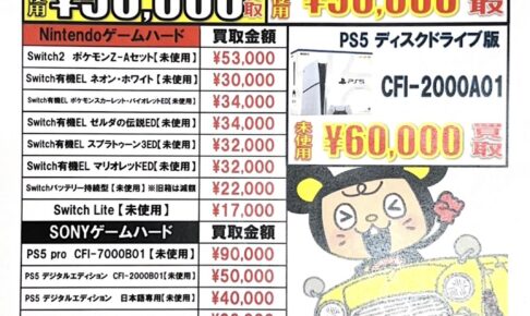買取情報いつもおたちゅう赤道店をご利用いただきましてまことにありがとうございます。 地域圧倒の買取価格を更新いたしました! ゲーム機を売るなら赤道店にお任せください(^o^) 特にPS5やスイッチELの買取価格には自信アリです♫…
