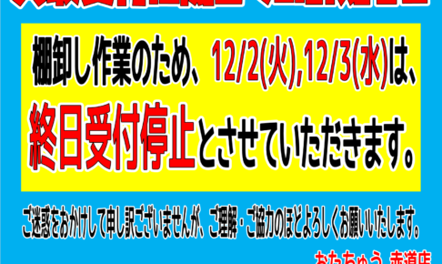 ★12/2(火),12/3(水)の買取受付停止のお知らせ★