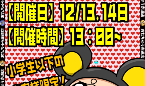 イベントアナウンス抽選会3日目も大変大盛況頂き誠にありがとうございます(^o^)✨️ おかげさまで赤道店は創業20周年!!毎週末イベント大開催!! ぜひ来週もご来店お待ちしておりま~チュ🐀